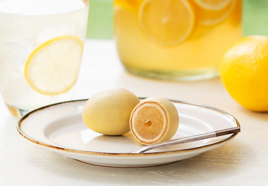 レモン果皮を加えることで、よりフレッシュな風味と食感のアクセントをプラスしたレモネード餡で、優しい甘さのはちみつペーストを包み、カステラ生地とふんわりとレモン香る淡い黄色のチョコでコーティング。甘くて爽やかなレモネードの味わいをつつみこんだ、かわいいたまご型のお菓子を作りました。冷やしてもおいしくお召し上がりいただけます。