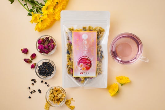 「浄花茶」はキクの花、マイカイカ、黒クコの実の3つの和漢素材が配合されています。