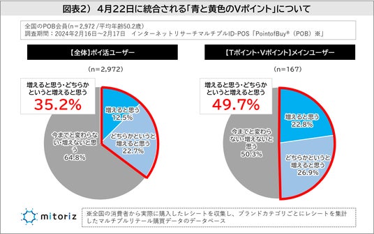 ・TポイントとVポイント統合で誕生「青と黄色のVポイント」は35%が“今後の利用が増えそう”と回答