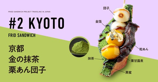第二弾の京都府でご提供するのは、『金の抹茶栗あん団子』という京都らしい和のスイーツを詰め込んだ揚げサンドです。