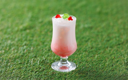 バラのシロップと花びらをトップに散らばせた、可愛らしいピンク色のノンアルコールカクテルです。 グレナデンシロップとヨーグルトリキュールを使用しています。