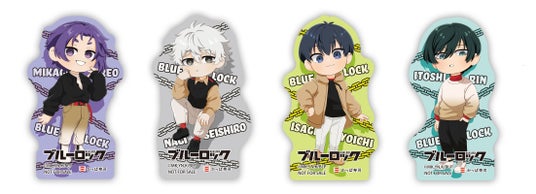 「オリジナルステッカー」の絵柄は、かっぱ寿司限定の描き起こしミニキャラの「御影 玲王(みかげ れお)」「凪 誠士郎(なぎ せいしろう」「潔 世一(いさぎ よいち)」「糸師 凛(いとし りん)」がプリントされた全4種です。対象商品一皿毎に4種からランダムに1枚付きます。