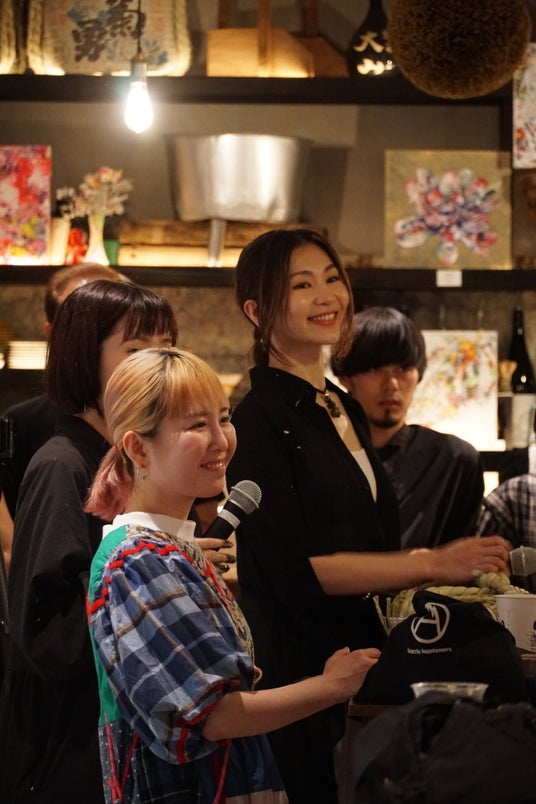 トーク内容は、自己紹介、アーティストになるきっかけ、作品を創るうえで大切にしていること、お酒を飲んで良かったこと&悪かったことは(失敗談)など。