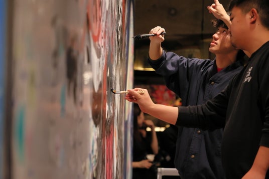 来場者が集まりだす。イベントプロデューサー・柏原晋平さんの提案で来場者もアートウォールにペイントを始める
