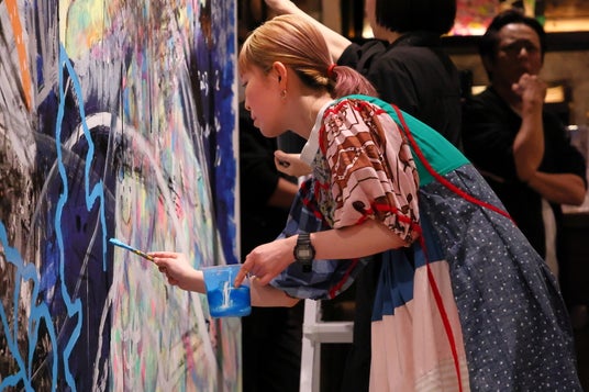 三人のアーティスト(長嶋里沙、さえもり、甲斐千香子)も加わってライブペイント開始。