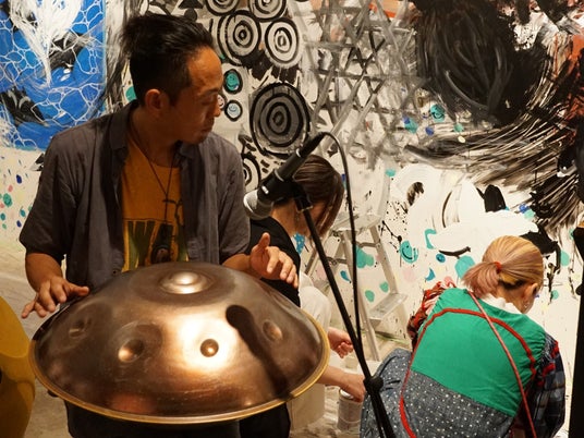 当日のゲストの中には、スイスが由来とされる楽器「ハンドパン」の奏者が。急遽ペイントとのライブセッションも実現!