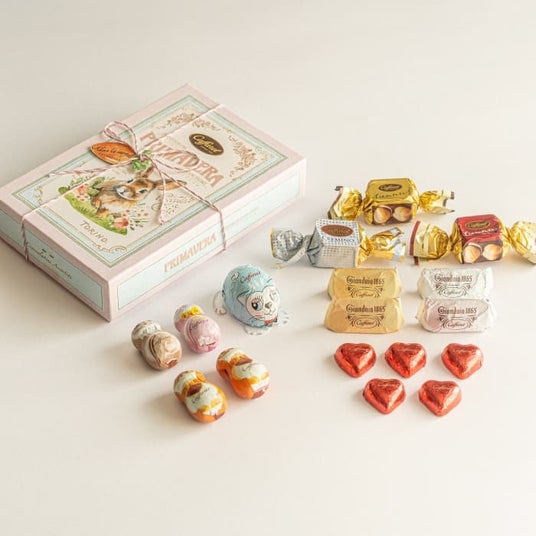 詳細:大勢で楽しくチョコレートのシェアができる便利なセット。カファレルの代名詞でもある「ジャンドゥーヤ」をはじめ、大粒のヘーゼルナッツが入った「ピエモンテ」やてんとう虫、リスなどの可愛らしいホイルチョコレートがセットされています。