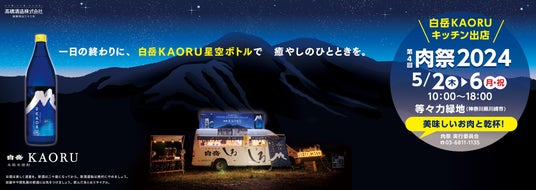 「生きてくだけで冒険だ。」の広告看板と白岳しろキッチンカーがゴールデンウィークに出店するイベント第4回「肉祭2024」(5月2日~6日開催)の紹介看板が、4月29日(月・祝)~5月5日(日)の期間限定で新宿メトロプロムナードに登場します。