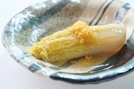 白菜だけがシンプルに皿にある姿から、「白菜の一人静か」と名付けました。じっくりと2日間かけて煮込むことで、野菜の持つえぐみが抜け、白菜の新鮮さがかえって引き立ち、そして溢れでる出汁の旨味を最大限に味わうことのできる一皿です。台湾の名産であるカラスミが、最後に彩りと濃厚な風味を添えます。