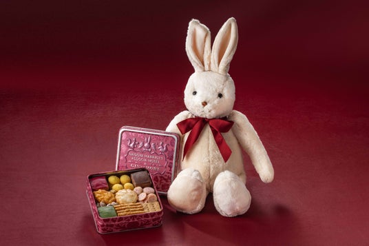 ホテルのマスコットキャラクター「マリオットラビット」もデザインされているので、柔らかな肌触りのぬいぐるみとセットにした贈り物としてもおすすめです。