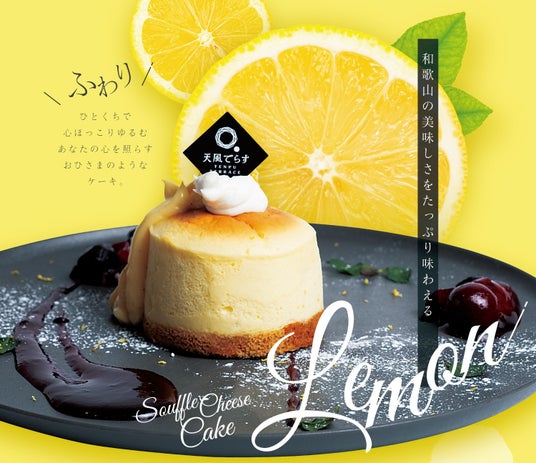 1周年を記念して、和歌山県岩出市の「Lagom sweets Labo」とコラボレーションし、和歌山の美味しさを詰め込んだ「天風てらす特製 レモン香るスフレチーズケーキ」を新開発しました。黒沢牧場の牧草のみを食べて育ったグラスフェッドミルクに、とりとんファーム(龍神村)のコクある卵、そして和歌山県産の香り豊かなオーガニックレモンをたっぷり使用した、とろけるお味が自慢です。グルテンフリーで体にも優しい。天風てらす特製 レモン香るスフレチーズケーキセット(コーヒー or 紅茶付き) ¥1,280(税込)。