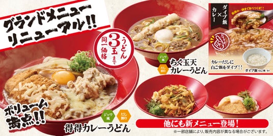 株式会社家族亭(本社・大阪府大阪市、代表取締役社長・坪山 憲司)が運営するうどんチェーン「得得(とくとく)」は、2024年4月22日(月)~ グランドメニューをリニューアルします。得得がもっとお得に、人気のジャワ風カレーうどんに新しいメニューが追加され、うどん3玉まで同一価格になりました!カレー以外にも新メニューが登場しております。