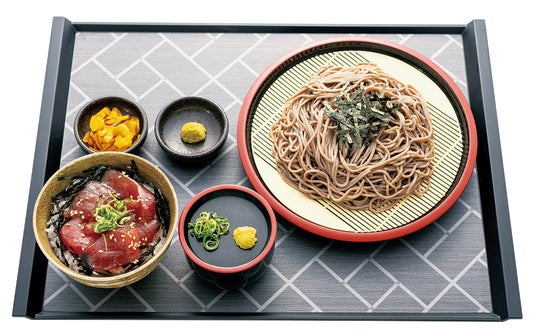 のど越しの良いつるりとした食感を楽しめるざるそばに、人気の丼ぶりをセットにしました。甘めの醤油ダレにマグロを漬け込んだ「漬けまぐろ丼」のセットはさっぱりとしながらもお腹も満足。生姜が薫る「豚の生姜焼き丼」のセットはお肉もお蕎麦も食べたい方に是非。
