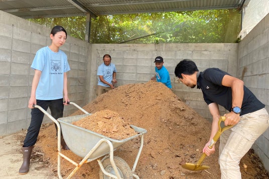 このプロジェクトは、島のパイン農家がスタートさせ、西表島ホテルも昨年から堆肥化のトライアルや島内における堆肥活用の全体構想の検討に参加しているものです。堆肥化の過程で使用する床材(とこざい)*2には、島の米農家から提供されるもみ殻や米ぬかなどが使用されています。今後はさらに、島内で課題となっている廃棄資源の活用も検討中です。島内の様々な関係者が協力し合うことで、島内における農業の持続可能な循環の構築を目指しています。