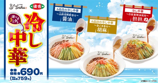 中華料理店「れんげ食堂Toshu」「中華東秀」を展開しているイオングループのオリジン東秀株式会社(本社:東京都調布市/代表:沢村 弘也)は、4月24日(水)より、「冷し中華」3種類を季節限定の8月末頃まで販売いたします。