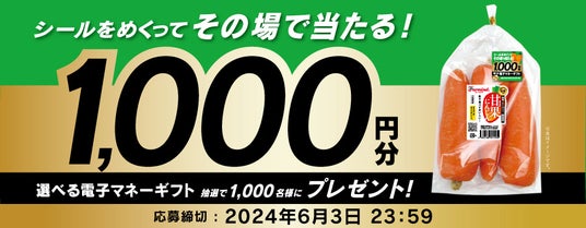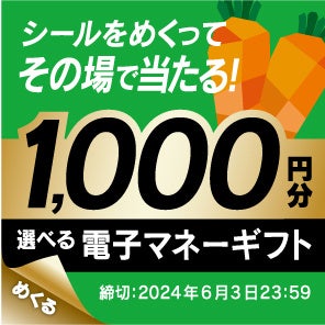 青果の総合流通企業の株式会社ファーマインド(本社:東京都千代田区、代表取締役社長:堀内達生)は、2024年4月22日(月)より、選べる電子マネーギフト1,000円分が1,000名様に当たる『その場で当たりが分かる 甘果にんじん春キャンペーン』を実施いたします。