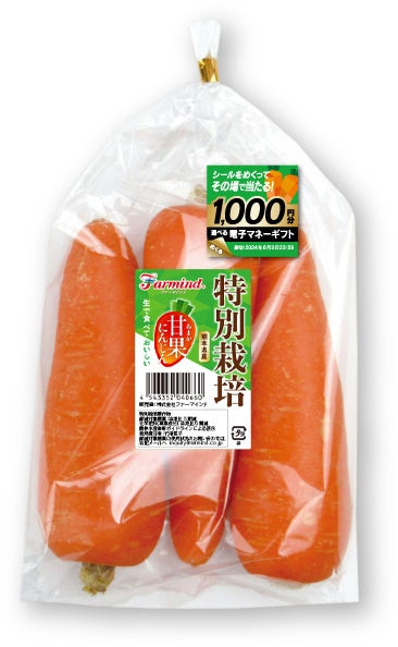 ご購入のたびに当たるチャンスがありますので、ファーマインドの甘果にんじんを楽しみながら、是非ご応募ください。
