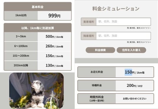 ペットタクシーかるたくは、乗車依頼前からWebで自動見積もりが可能