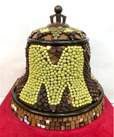 たくさんのチョコレートを組み合わせ作られた「チョコの鐘」