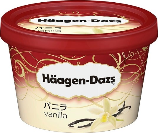 ハーゲンダッツの特徴である濃厚でクリーミーな味わいをイメージするクリーム色と、バーガンディーレッドを基調としたデザインです。フレーバー名の日本語表記とロゴを大きくしました。