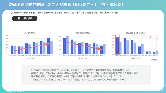 全年代が困っている「レジ待ち」は高齢男性ほど苦手な傾向。商品の口コミが気になるのは若い男性