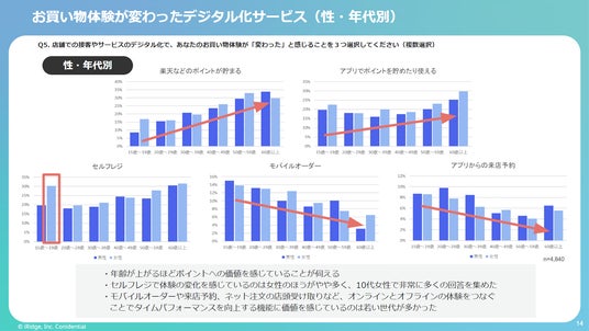 店頭デジタル体験では、若者層は「タイパ」と「OMO体験」重視、中高年は「コスパ」と「決済体験」重視