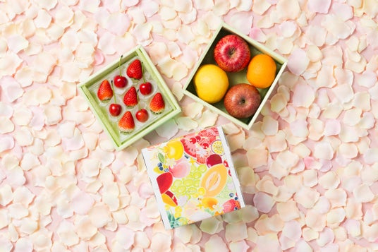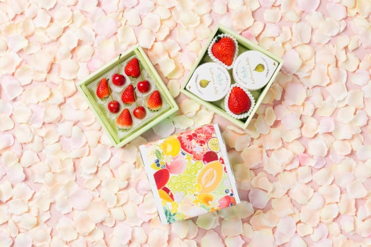 鮮やかな赤色の果実が、まるで宝石のようにギフトボックスを彩ります。