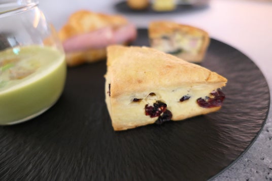 3段目のセイヴォリーには、旬のグリーンピーススープ、チーズの香り高い季節のキッシュ、またクランベリーとアーモンドのオリジナルスコーンは、クロテッドクリームやジャムとご一緒にお召し上がりください。