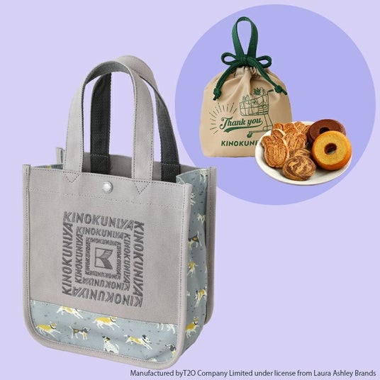 ローラ アシュレイのテキスタイルを使用した限定バッグと、「Thank you」メッセージの入ったスイーツバッグのセット。日頃の感謝をこめたプレゼントにいかがでしょうか。