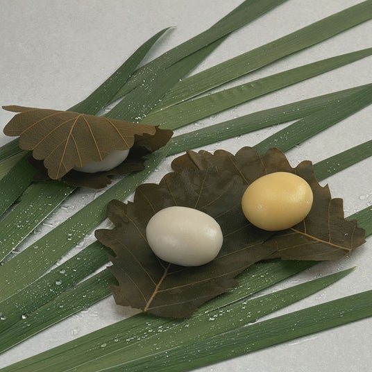 円錐形にしたお餅を笹の葉で包み、一つひとつ職人が井草で結いあげる粽。餅生地や外郎製、葛製など、味わいもさまざまです。