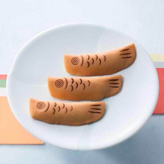鯉のぼりをかたどった焼き皮で、求肥と白餡を包みました。