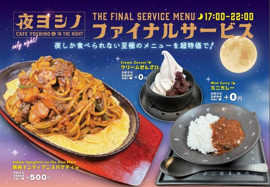 17時~22時にドリンクをご注文でミニカレーまたはクリームぜんざいを無料サービス ※中島店限定