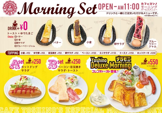 開店から閉店まですべての時間帯に無料サービスが付くカフェヨシノのお得なメニュー