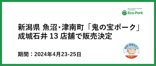 株式会社Eco-Pork(所在地:東京都千代田区 代表:神林隆 以下、「当社」)は、鬼や福ふく(所在地:新潟県中魚沼郡津南町 代表:島田福徳 以下、「鬼や福ふく」)が当社DXソリューションを活用して生産するブランド豚「鬼の宝ポーク」が、株式会社成城石井の運営するスーパーマーケット「成城石井」の一部店舗にて期間限定で取り扱いとなることをお知らせします。
