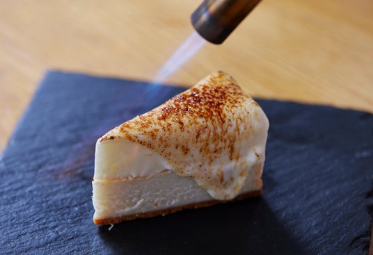 コロナ渦で店舗来店のお客様が減少する中、私たち飲食店にできることを考えました。それは、より一層美味しい料理を作ること!何十回、何百回と試作を繰り返し、試行錯誤の上完成したのが「香るチーズケーキ」 です。目の前で炙ることであまーく香るブラウンシュガー、高級感ある風味が口の中いっぱいに広がる2種のビーンズ、スッと抜けていく爽やかなレモンの香り。下はベイクドチーズ、上はレアチーズの2層のチーズケーキになっています。