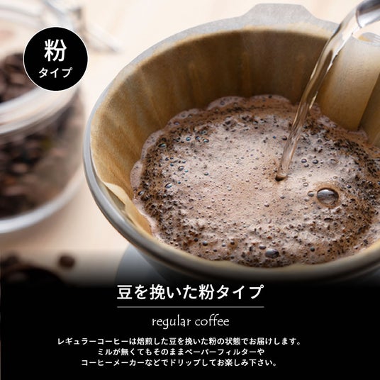 レギュラーコーヒーは焙煎した豆を挽いた粉の状態でお届けします。