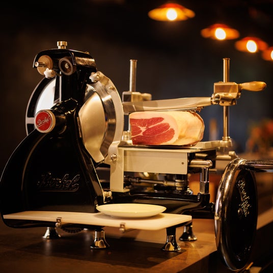 コースのスタート、まずは洋食堂葡萄の看板メニューで皆様ご注文頂ける、特別なスライサーで極薄にカットされた生ハム&ニョッコフリット。極薄の生ハムは熱々のニョッコフリットと共に食べると、生ハムの美味しい脂がとろけて幸せな気分になります。