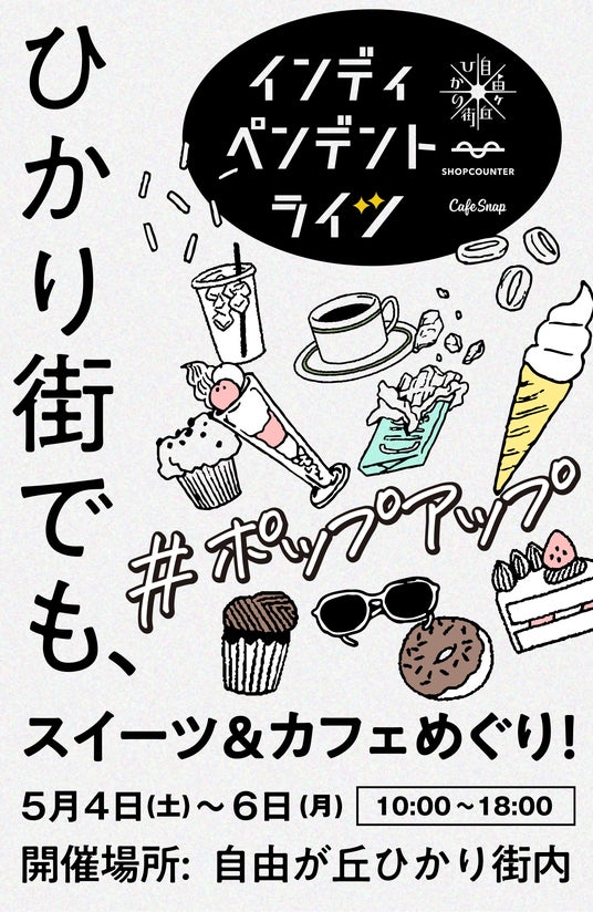 株式会社COUNTERWORKS(本社:東京都港区、代表取締役CEO:三瓶 直樹、以下「カウンターワークス」)が提供するポップアップストアの出店支援プラットフォーム「SHOPCOUNTER」と、株式会社CafeSnap(本社:東京都渋谷区、代表取締役社長:大井 彩子)が運営するカフェに特化したアプリ&メディア「CafeSnap」の共同プロデュースにより、東京・自由が丘のショッピングアーケード型の商店街「自由が丘ひかり街」(運営:自由が丘ひかり街協同組合)を会場に、スイーツとコーヒーでカフェ空間を商店街内に作り出すポップアップイベント「Independent Lights(インディペンデント ライツ)」を、2024年5月4日(土)~5月6日(月・祝)の3日間、開催いたします。