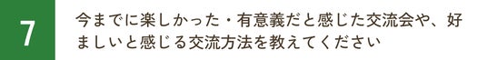 では、逆に今までに楽しかった・有意義だと感じた交流会や好ましいと感じる交流方法はどのような内容なのでしょうか?