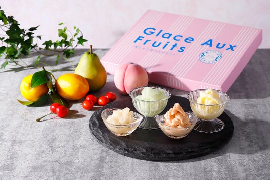 常温での持ち歩きができ、ご自宅で凍らせてお召し上がりいただくシャーベットのため、お手土産やお中元にもご利用いただけます。午後のティータイムや、食後のデザート、お風呂上がりのリラックスタイムなど、あらゆるシーンに楽しみたいひんやりスイーツです。◆『グラス オ フリュイ』 3,240円
