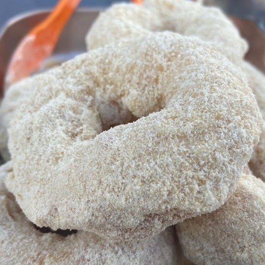 「台湾ドーナツ」とは、リング状に成型した生地に衣をつけ、揚げたドーナツに砂糖やミルクパウダーをかけたものを言います。ドーナツに衣をつけて揚げることで、外はカリカリ、中はふわふわとした独特な食感に!これが日本のドーナツでは味わえない新食感!
