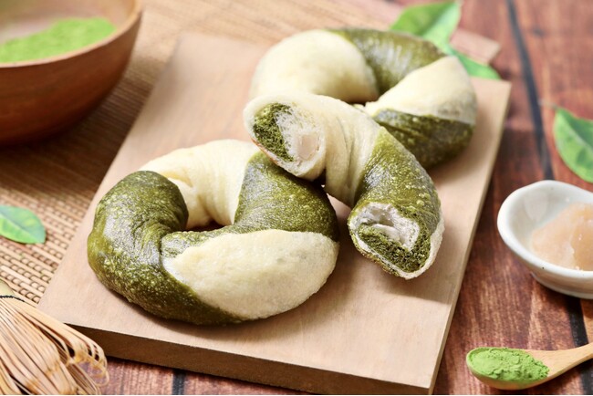 抹茶の苦みとピスタチオのコクが相性抜群な『抹茶ピスタブリュレ』、シリーズ累計41万個以上※1販売した人気商品『京生ちぎりパン』の季節限定フレーバー『京生ちぎりパン~宇治抹茶仕立て~』、薫り高い宇治抹茶と白あんの組み合わせが絶妙な『ベーグル 宇治抹茶と白あん』、ゲランドの塩が全体の甘みを引き立てる『スコーン 宇治抹茶?塩“チョコ』、大葉が爽やかに香る『大葉とツナのおやき』、ずんだの優しい甘みが上品な味わいの『米粉のずんだバターあんぱん』、アスパラガスを丸ごとサンドした『アスパラベーコンチーズ』、ゲランドの塩が効いた満足感のある一品『エビとアボカドのフォカッチャ』の全8品が登場いたします。