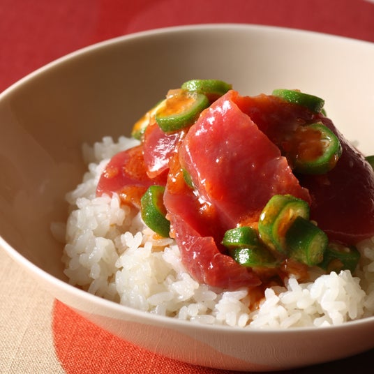 マグロとオクラのポキ丼