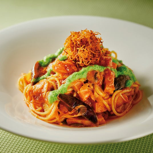 ◆カフェ レックコート:ネギとナスの和風トマトスパゲティー「ネギベーゼ」