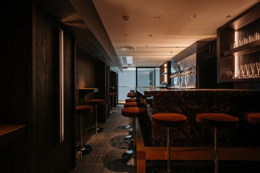 「HYBE Design team」が手がけるインテリアデザインは、茶室のような“和”の設計手法に石やステンレスなど現代的な素材を掛け合わせ、相反する要素が一つの空間の中で共存することで、二重構造体の美や楽しさを生み出しました。店内には、カウンター、個室、テーブル席に加えてスタンディングシートを備え、肩肘張らずカジュアルにご利用いただけます。