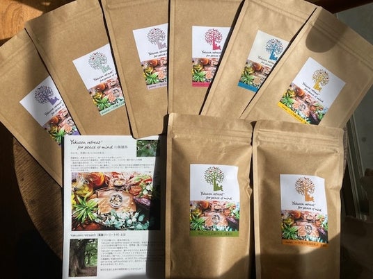 Yakuzen retreat(R)の8種の薬膳茶●Yakuzen retreat(R)による4つの陰陽バランスによる呼吸法、self-writing, self-touching