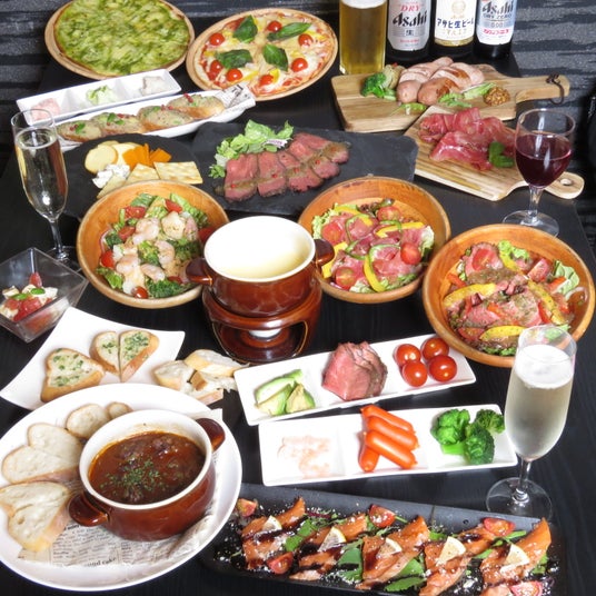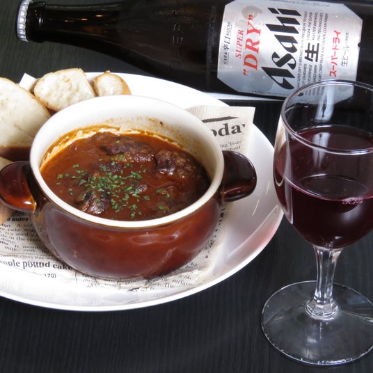 夜の華やかなバータイムワインに良く合う名物料理の「牛すじのデミグラス煮込み」を初め、豊富なバリエーションのサラダやローストビーフなど様々な料理で心とお腹を満たし自然と会話が生まれる、魅力的な空間を提供します。
