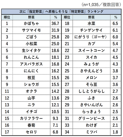 ■次に「指定野菜」へ昇格しそうな「特定野菜」1位は「かぼちゃ」
