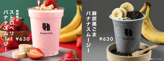 期間限定のストロベリーバナナスムージー、麻炭黒ごまバナナスムージーもオススメ
