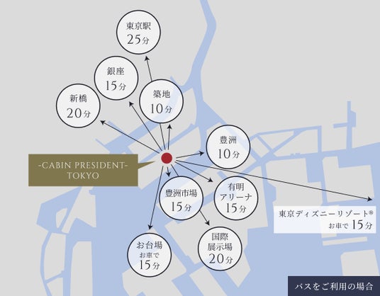 (4)築地・銀座エリアへは15分、東京駅へも25分以内バス1本 ― 東京旅の拠点に絶好のロケーション